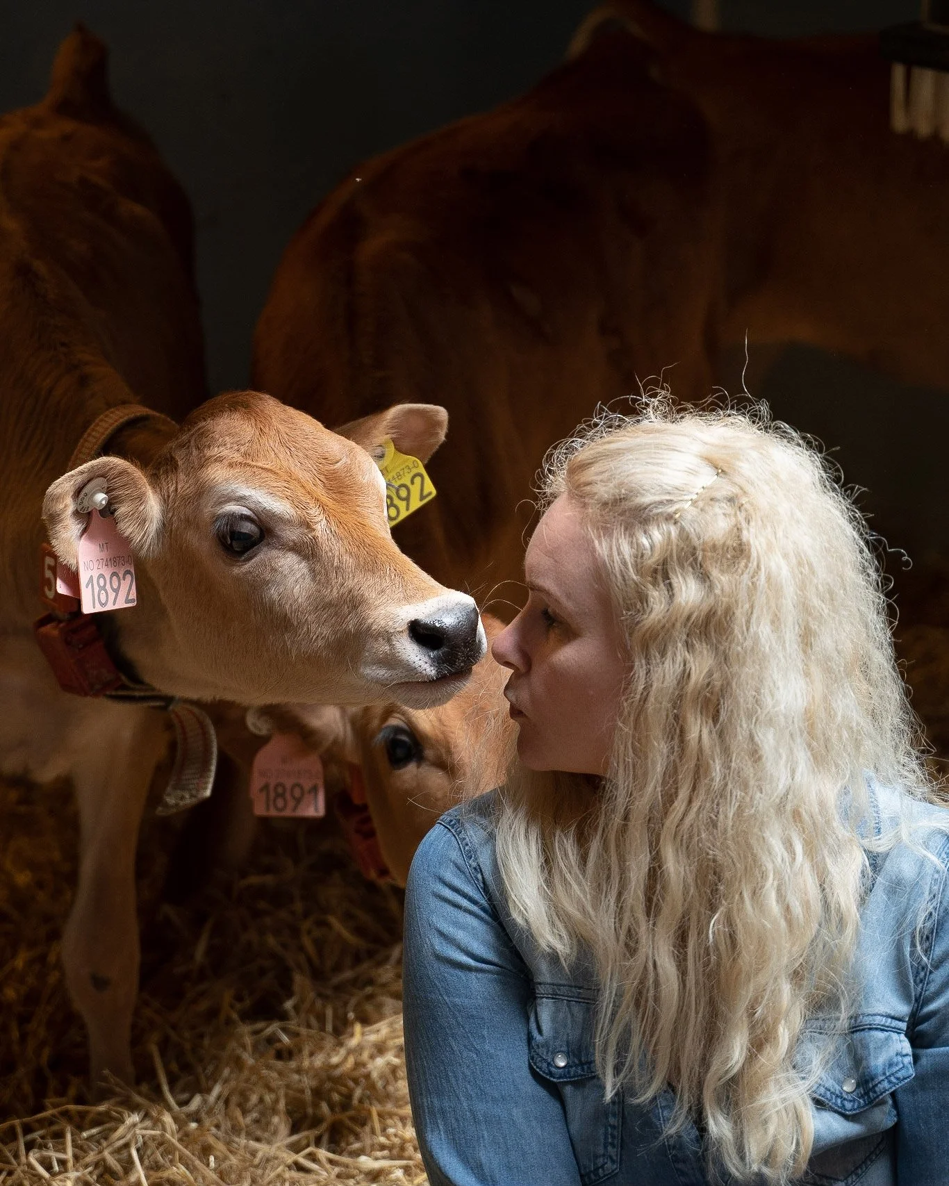 Her på garden har vi 65 mjølkekyr av rasen jersey. Ei lita ku som slepper ut mindre klimagassar enn større kyr. Jerseykua er nysgjerrig, ho har eit godt lynne og er fôreffektiv. Det er faktisk også miljøvenleg.