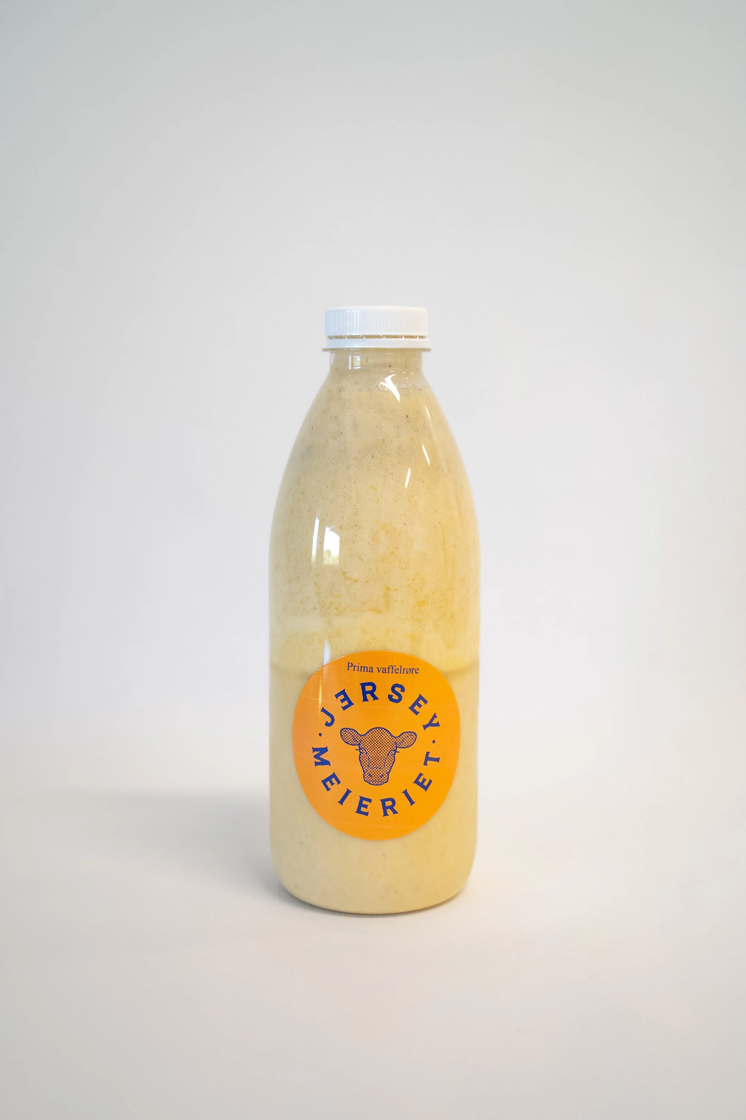 Vår vaffelrøre er laga med mjølk, buttermilk/saup, smør og rømme frå Jerseymeieriet. Tappa på flaske, berre å tøme rett i vaffeljernet. Enkelt og veldig godt.